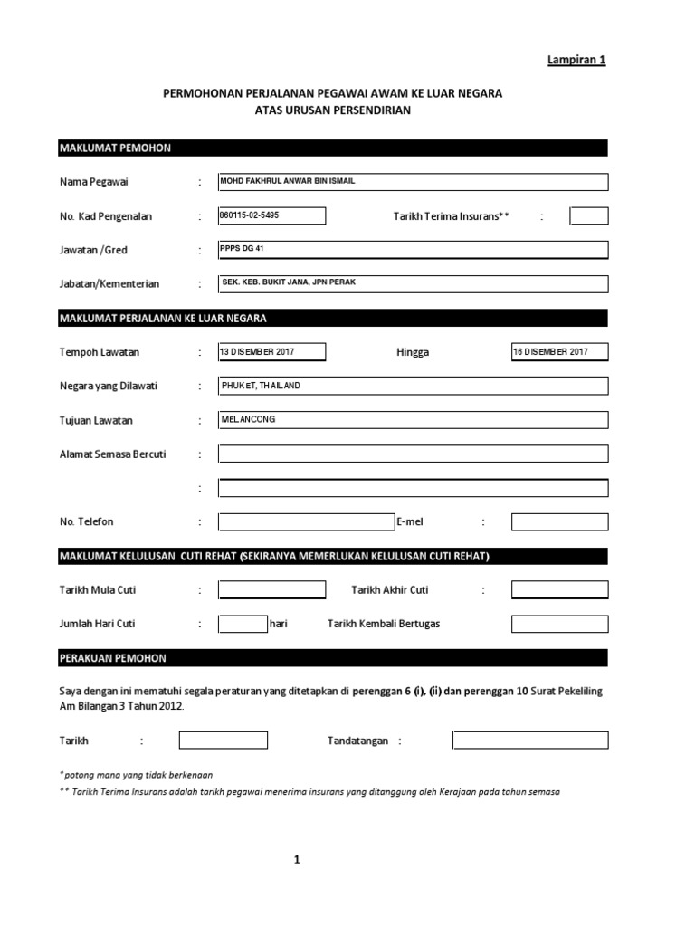 Faedah/ insentif buat penjawat awam & pesara bajet 2020. Setiap penjawat awam yang ingin ke luar negara atas urusan peribadi atau pun tugas perlu mengisytiharkan tindakan mereka. 1) isi permohonan cuti di hrmis 2) isi permohonan perjalanan ke luar negara melalui laman web khas sppkn 3) beli insurans sendiri (belilah yg premium supaya coverage dan. Kerajaan telah bersetuju untuk memberikan bantuan khas berjumlah rm600 kepada kakitangan awam dan rm300 kepada pembayaran bantuan adalah melibatkan pegawai perkhidmatan awam persekutuan di gred 56 dan ke bawah sebanyak rm600.00 dan turut. Pegawai awam yang ingin melancong ke luar negara harus membuat permohonan perjalanan ke luar negara atas urusan persendirian sebelum kami sentiasa menyediakan bahan dalam bentuk direct download yang memudahkan para guru / ibubapa download bahan facebook group: Syarat dan borang permohonan menjalankan pekerjaan luar/sambilan bagi penjawat awam di pentadbiran kerajaan negeri sembilan. Sebelum ke luar negara, anda dikehendaki memohon kelulusan dengan mengisi borang permohonan. Borang permohonan perkhidmatan sesi kaunseling. Sistem permohonan jtm online dibuka. Penjawat awam adalah kumpulan yang melaksanakan setiap peraturan yang dikuatkuasakan kerajaan dan sewajarnya menjadi contoh teladan semalam, perdana menteri, tan sri muhyiddin yassin mengumumkan pelaksanaan pkp di seluruh negara bermula esok yang antara lain melarang. Insentif kepada waris penjawat awam. Isi permohonan perjalanan ke luar negara di sppkn. Berikut adalah tarikh gaji penjawat awam 2021 seluruh negeri berdasarkan surat pekeliling akauntan negara malaysia (spanm) bil 5 tahun 2020.