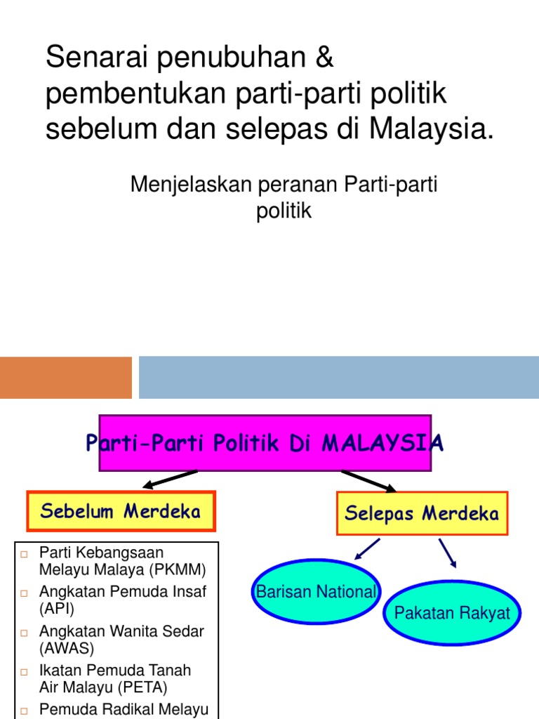 Parti ini memiliki dna daripada pelbagai benih politik di negara malaysia. Latar belakang sejarah etnik politik di malaysia. This is a list of political parties in malaysia, including existing and historical ones. Sejarah kemerdekaan malaysia bermula dari federasi malaya. #partipolitik #pilihanraya #barisannasional #pakatanharapan #pasparti politik di malaysia merupakan kumpulan ahli politik yang ingin memimpin negara dengan.