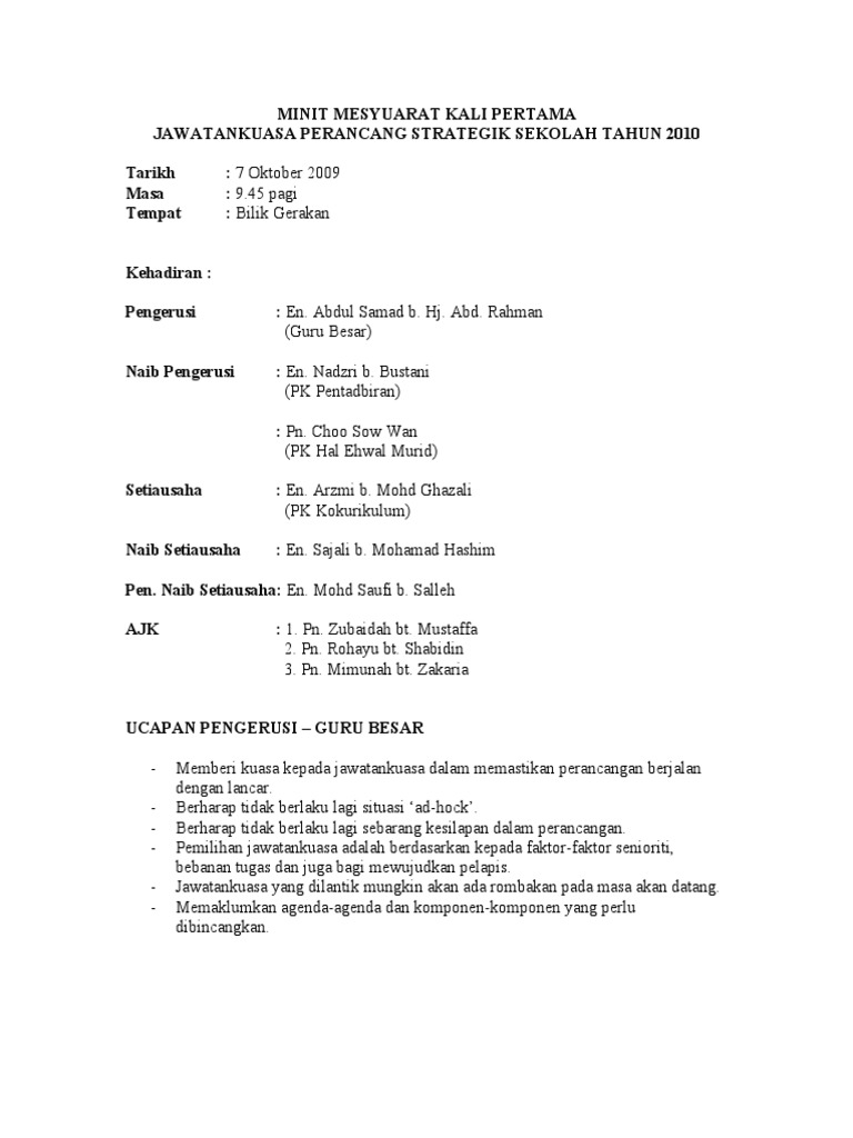 Mesyuarat Kurikulum 1 Tahun Ppt Download from slideplayer.info May 14, 2017 · minit mesyuarat kokurikulum kali pertama / 2016 tarikh: Doc minit mesyuarat jawatankuasa kurikulum kali pertama 2014 sekolah kebangsaan sungai rokam lokman noor academia edu. Find more similar flip pdfs like minit mesyuarat kokurikulum 1, 2020. Bilik gerakan smk jerantut kehadiran. Rohayati binti baba (guru besar) 34 roslizaini binti harun 2. Minit mesyuarat kokurikulum kali pertama 2 2.3 beliau juga berharap semua guru dapat memberikan komitmen dalam menjayakan aktiviti ko kurikulum sepanjang tahun 2017. More images for minit mesyuarat kokurikulum kali pertama » 26 disember 2018 hari :