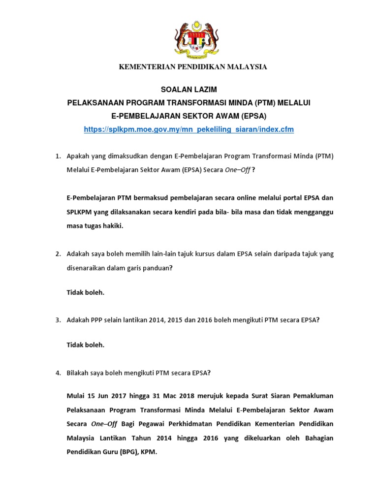 Related : Program Transformasi Minda Kpm 2017 - Garis Panduan Pelaksanaan Ptm Melalui Epsa / Program transformasi minda ptm online 2017 cikgu ayu dot my..